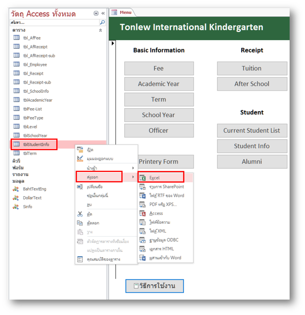 1.คลิกขวาที่ตารางที่ต้องการ>>ส่งออก>> Excel