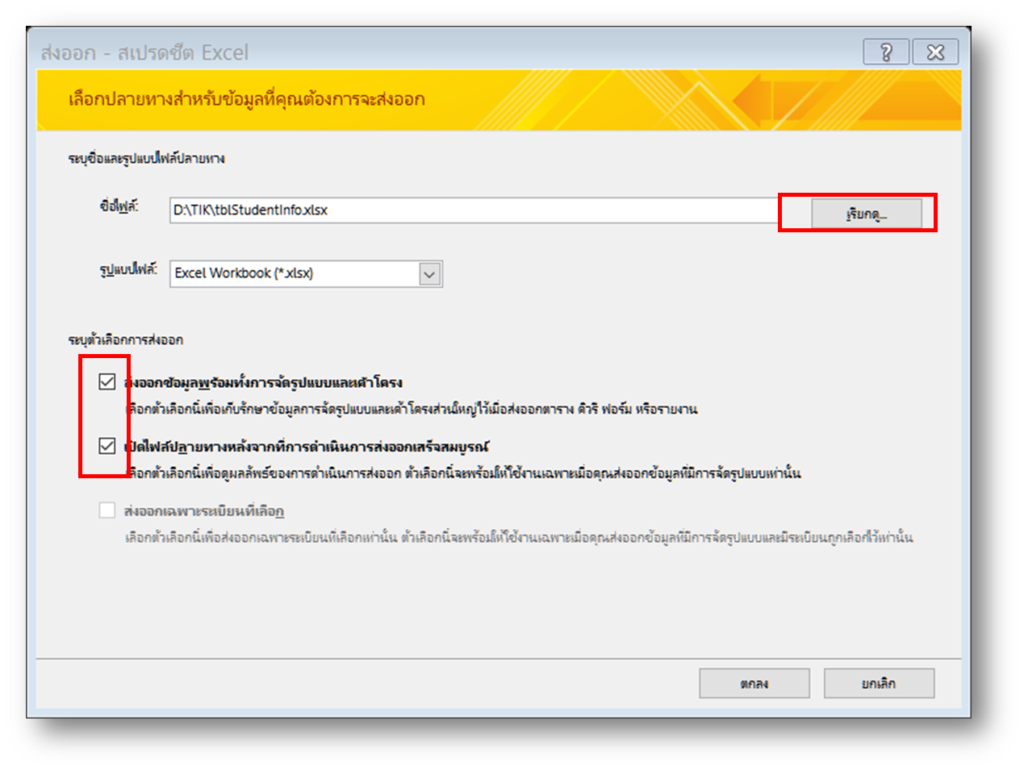 ตัวอย่างการส่งออกข้อมูลไปยัง Excel