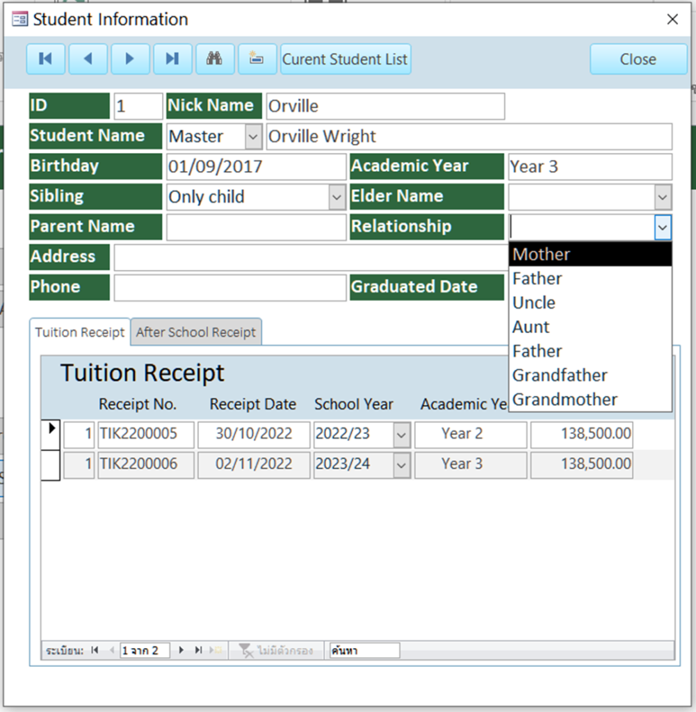 ระบบจัดเตรียมความสัมพันธ์ของผู้ปกครองนักเรียนไว้ให้แล้วตามภาพที่1