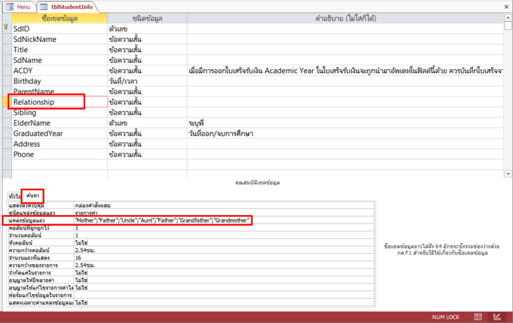 2. คลิกที่ Relationship แล้วคลิกที่แท็ป ค้นหา สามารถแก้ไข/เพิ่มความสัมพันธ์ผู้ปกครองได้ที่ แหล่งแถวข้อมูล