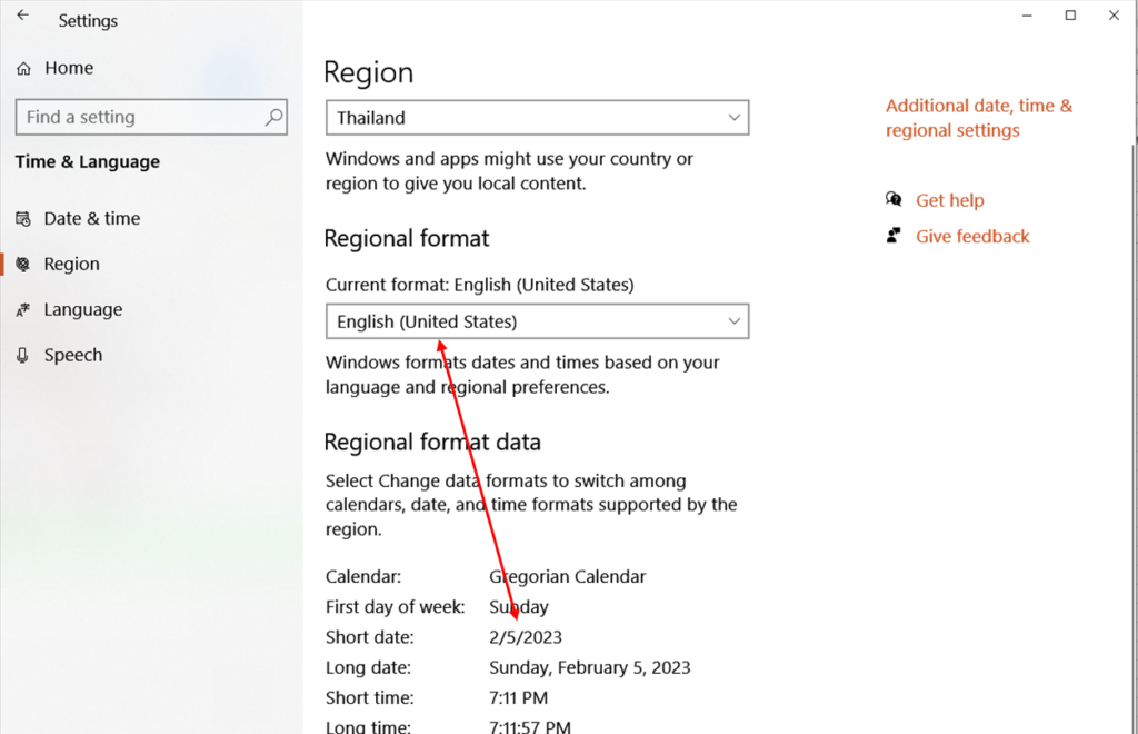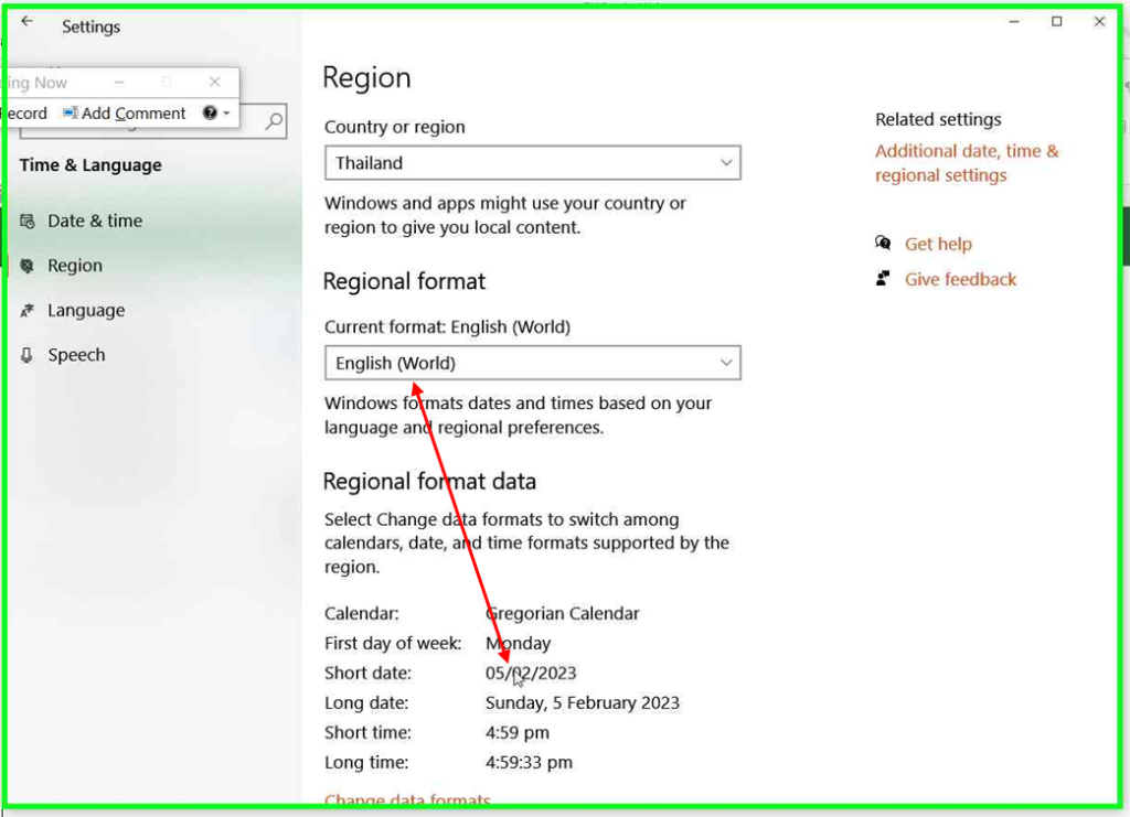 3. ที่ Current format: English (World) ซึ่งเป็นรูปแบบ วัน/เดือน/ปี