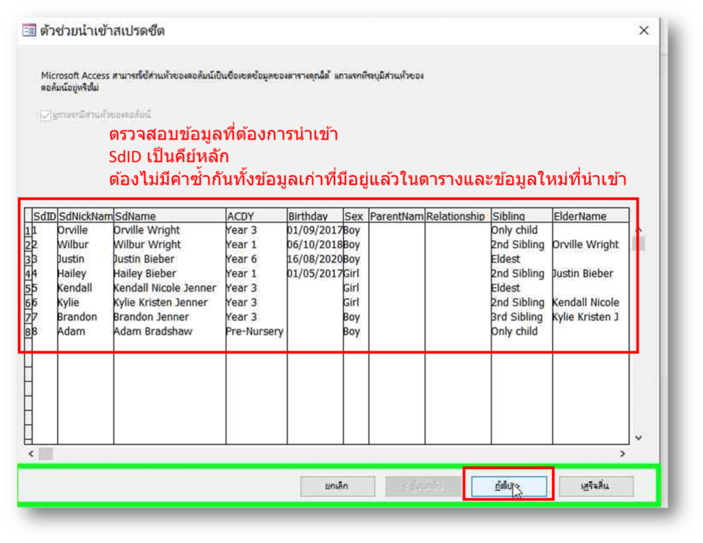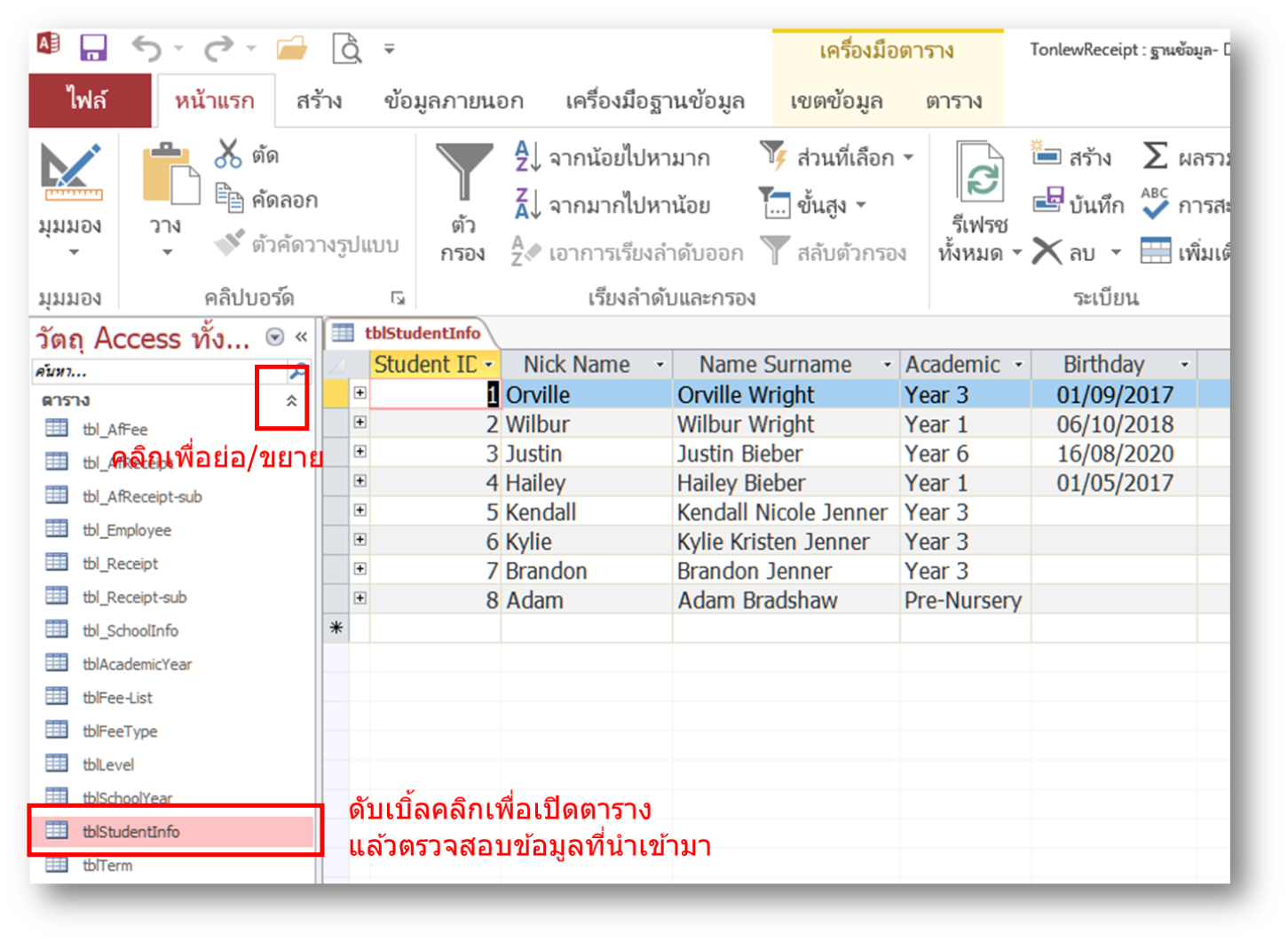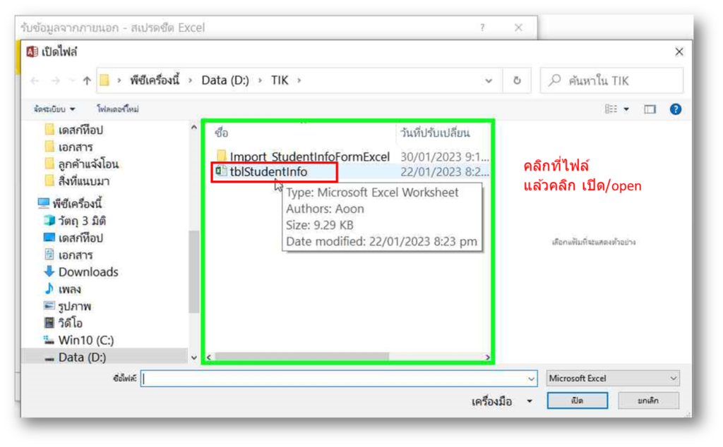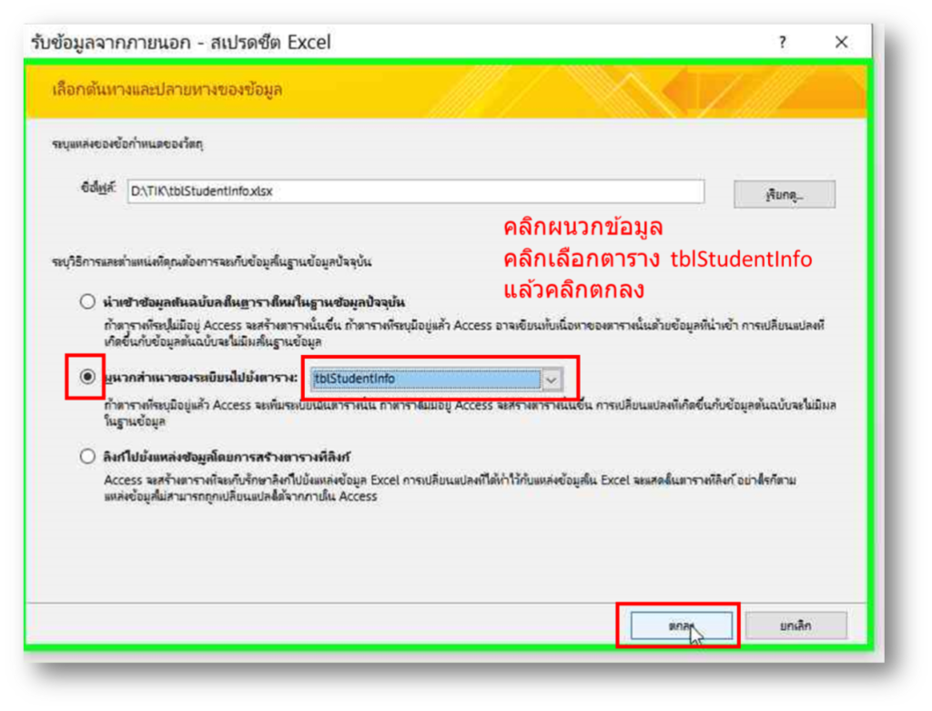 วิธีนำเข้าข้อมูลนักเรียนจากไฟล์ excel tblStudentInfo